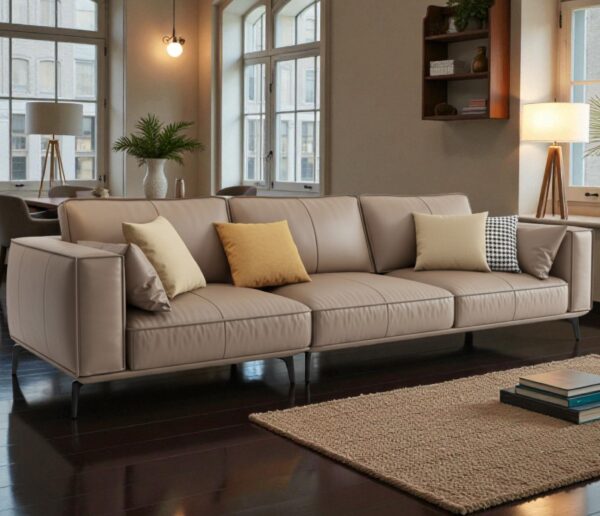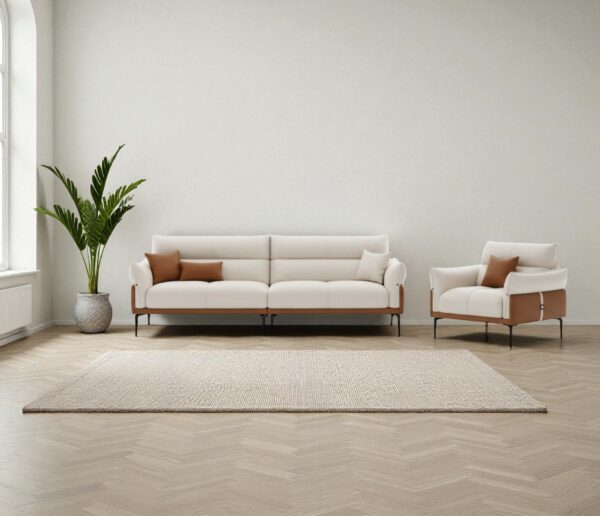 The Elegant Pearl Sofa is a perfect blend of simplicity and sophistication. Designed in a minimalist two-tone palette, it features soft grey upholstery, cozy white armrest pads, and dual-shaded …