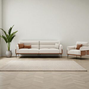 Strong & Durable Construction — Made with a solid Neem / Silver Oak hardwood frame, reinforced with commercial-grade plywood and high-density branded foam (40D seat & 35D back). Supported by spring and elastic webbing suspension for long-lasting comfort and shape retention.